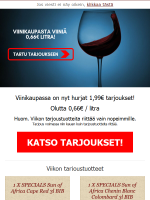 Viinikaupassa on nyt hurjat 1,99 tarjoukset! Olutta 0,66 / litra Huom. Viikon tarjoustuotteita riitt vain nopeimmille. Tarjous voimassa niin kauan kuin tarjoustuotteita riitt . KATSO TARJ...